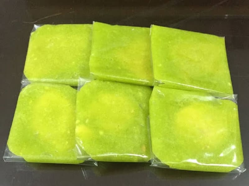 Chia phần vỏ cốm và nhân đậu xanh đã nấu trước thành từng phần vừa ăn, phần nhân đậu xanh vo lại thành từng viên. Sau đó, lấy vỏ cốm bọc bên ngoài phần nhân và cuối dùng là sử dụng túi nilon bọc chiếc bánh vừa làm lại để bảo quản.