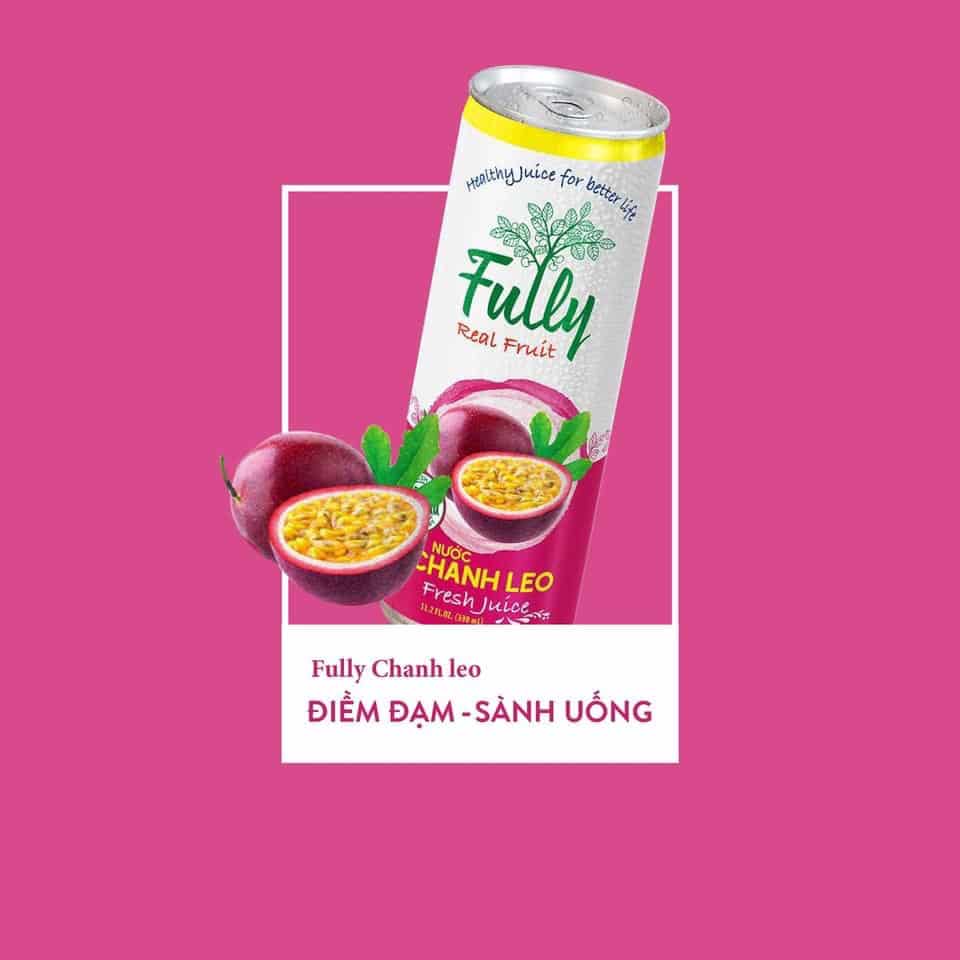 Nước chanh leo FULLY : được tinh chế từ những quả chanh leo tươi ngon, không chứa các hóa chất độc hại. Chanh leo gồm có rất nhiều dưỡng chất và vitamin cần thiết cho cơ thể, là một loại trái cây rất tốt cho sức khỏe. Chính vì thế, sử dụng một ly nước chanh leo mỗi ngày sẽ mang lại nguồn năng lượng và các vitamin thiết yếu cho cơ thể, cho bạn vóc dáng và làn da hoàn hảo. Ngoài ra, Sản phẩm còn có công dụng lớn trong việc giảm cân, thúc đẩy cơ chế chuyển hóa thức ăn, đốt cháy chất béo và giải độc cơ thể.