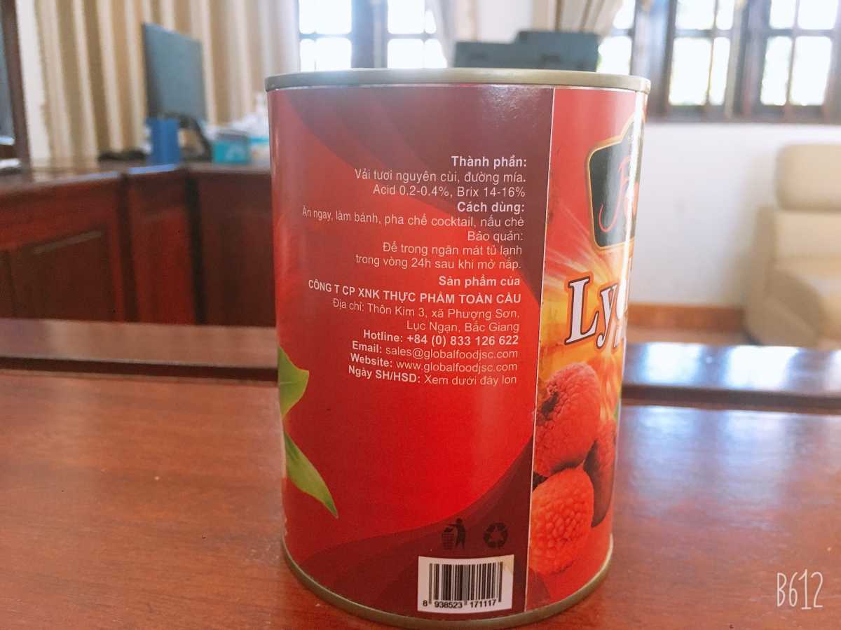 Vải thiều đóng hộp 565 ml (Nw: 565gr, DW: >= 50%, Brix: 12-14%)